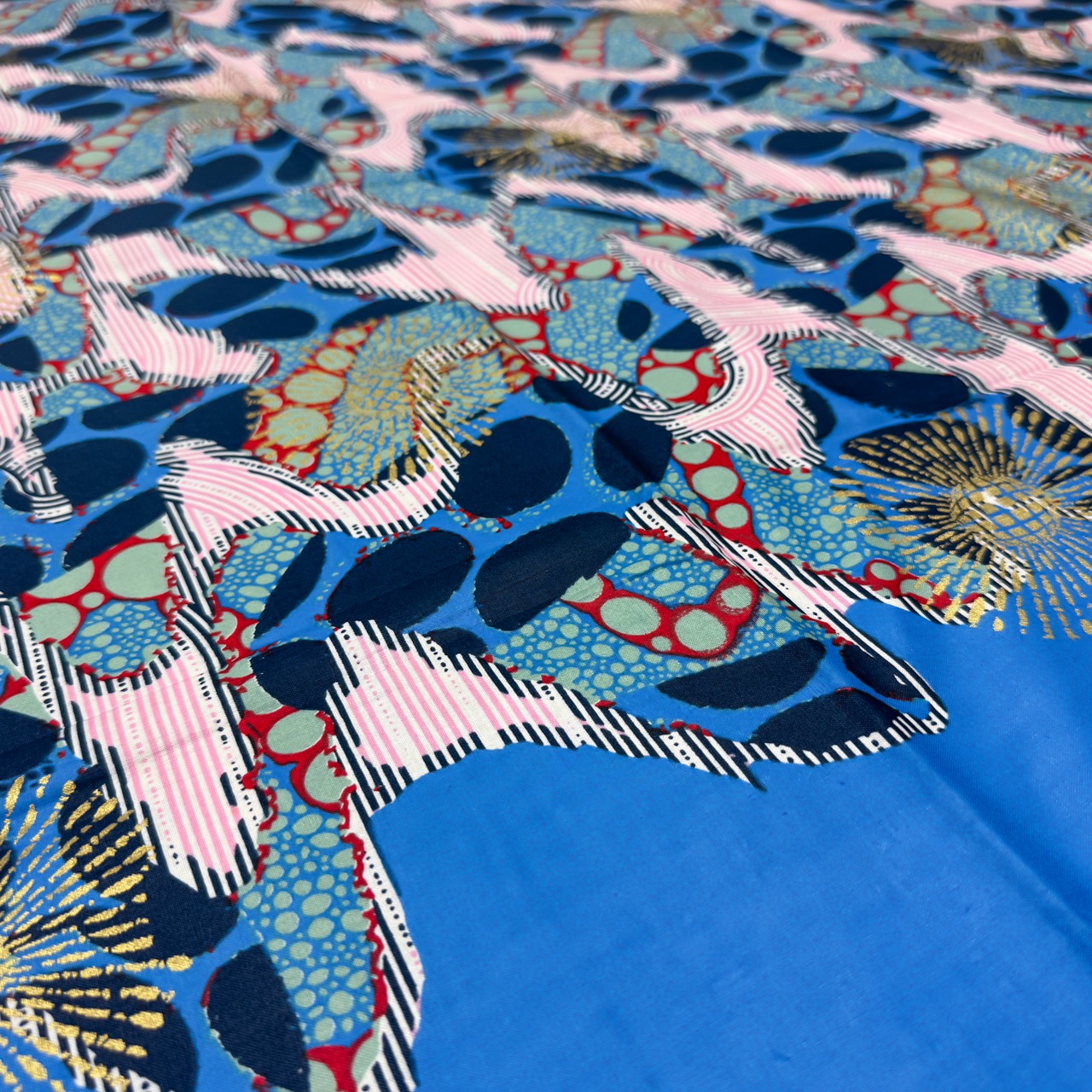 ・こちらのアフリカンファブリックは6ヤードを最大とした束ごとに分かれています。そのため、例えば弊社の10ヤードの在庫がある場合でも「6ヤードの束」と「4ヤードの束」に分かれており、10ヤードが1枚で繋がっているわけではありません。