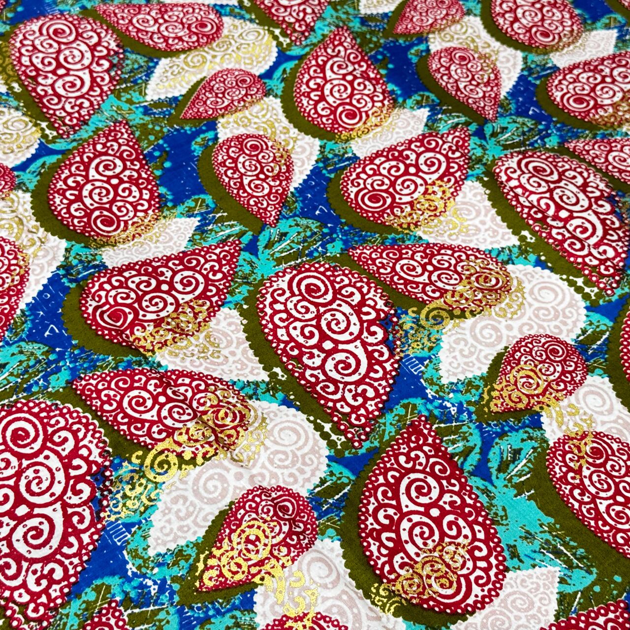 ・こちらのアフリカンファブリックは6ヤードを最大とした束ごとに分かれています。そのため、例えば弊社の10ヤードの在庫がある場合でも「6ヤードの束」と「4ヤードの束」に分かれており、10ヤードが1枚で繋がっているわけではありません。