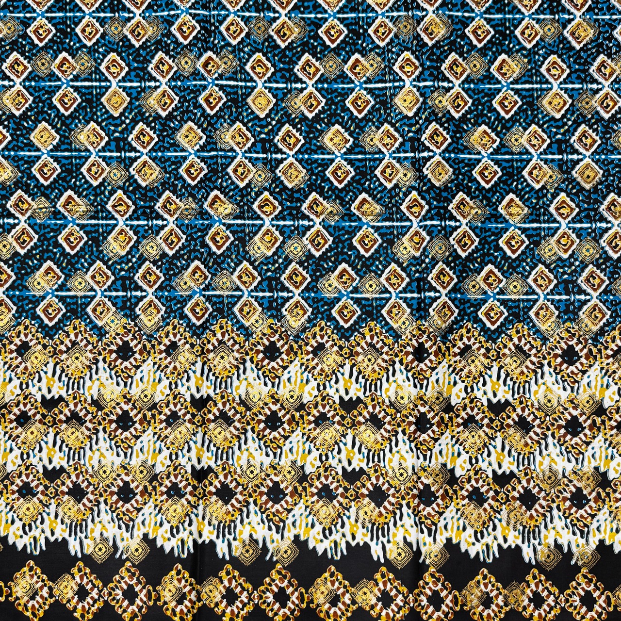 ・こちらのアフリカンファブリックは6ヤードを最大とした束ごとに分かれています。そのため、例えば弊社の10ヤードの在庫がある場合でも「6ヤードの束」と「4ヤードの束」に分かれており、10ヤードが1枚で繋がっているわけではありません。