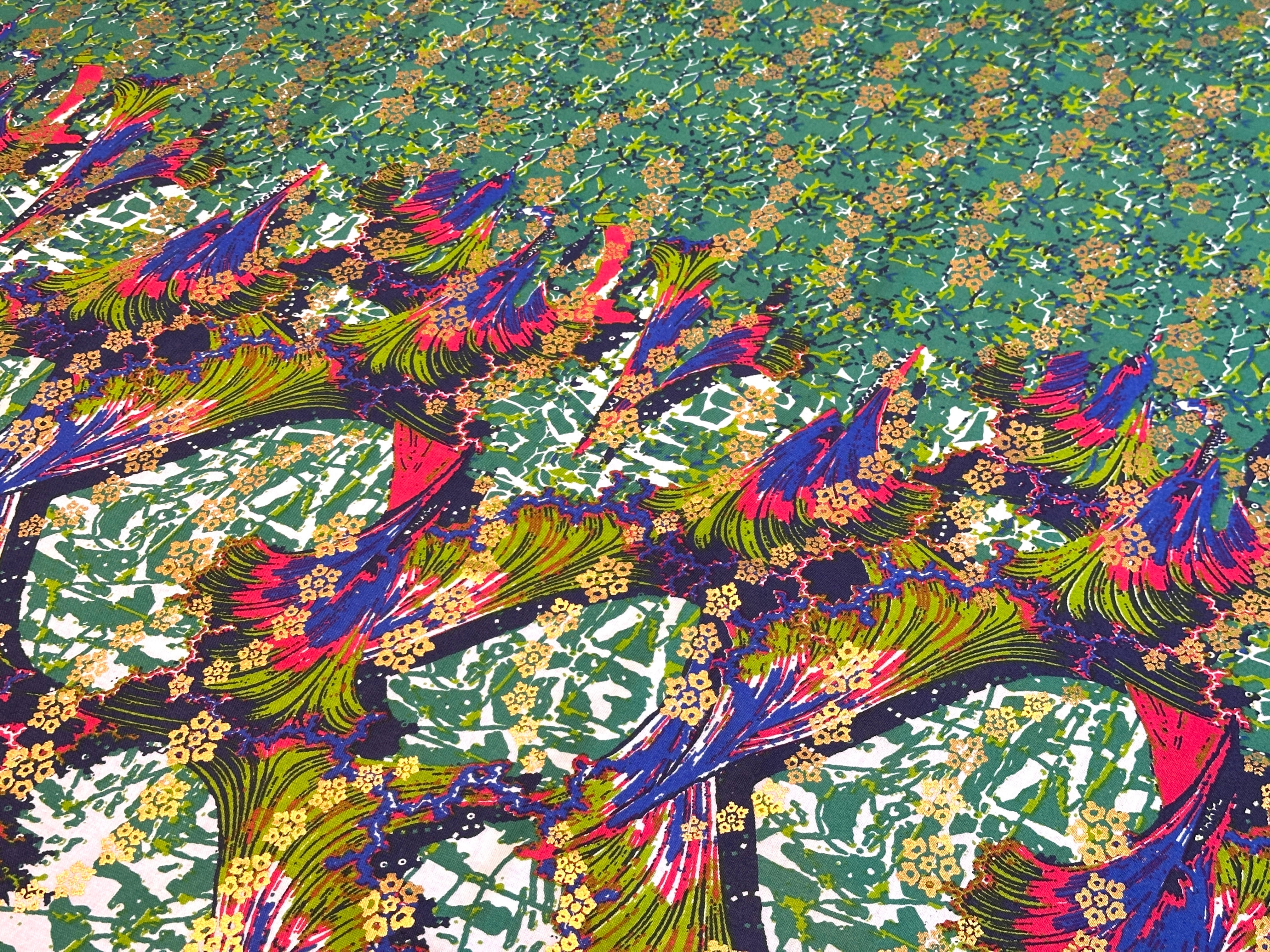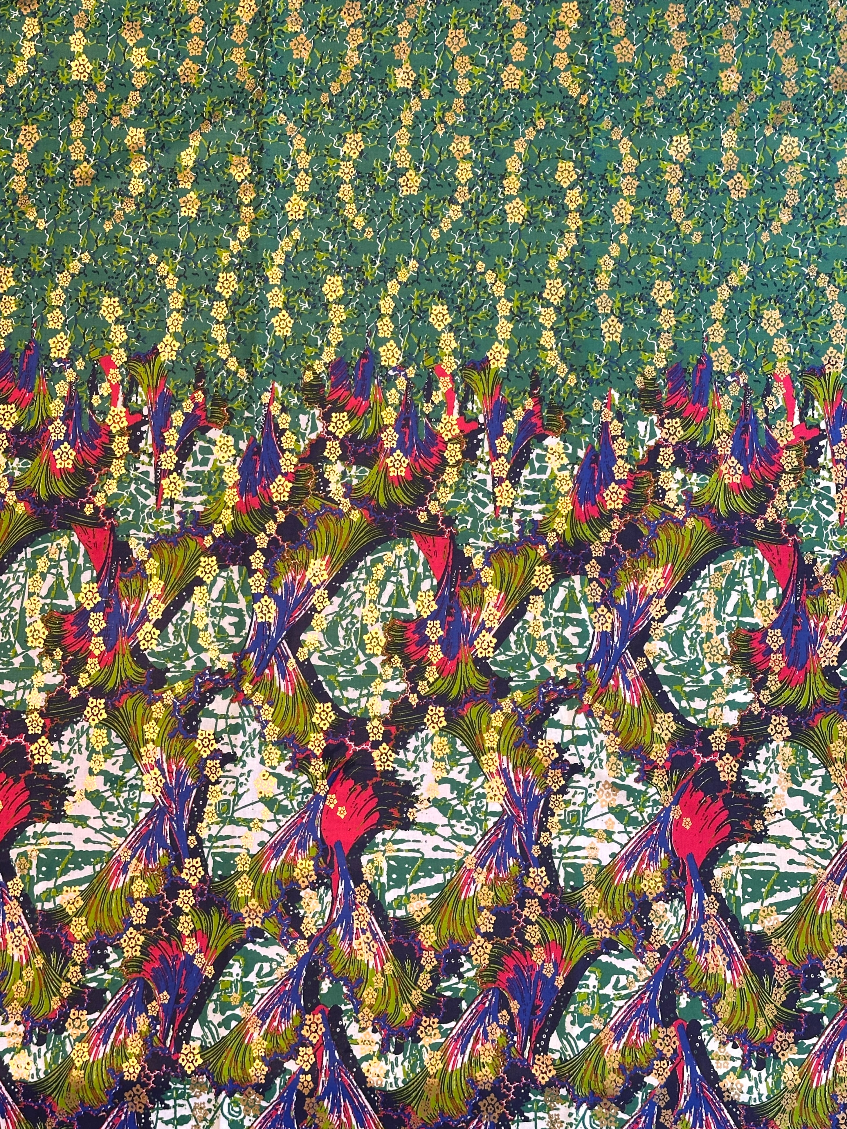 ・こちらのアフリカンファブリックは6ヤードを最大とした束ごとに分かれています。そのため、例えば弊社の10ヤードの在庫がある場合でも「6ヤードの束」と「4ヤードの束」に分かれており、10ヤードが1枚で繋がっているわけではありません。